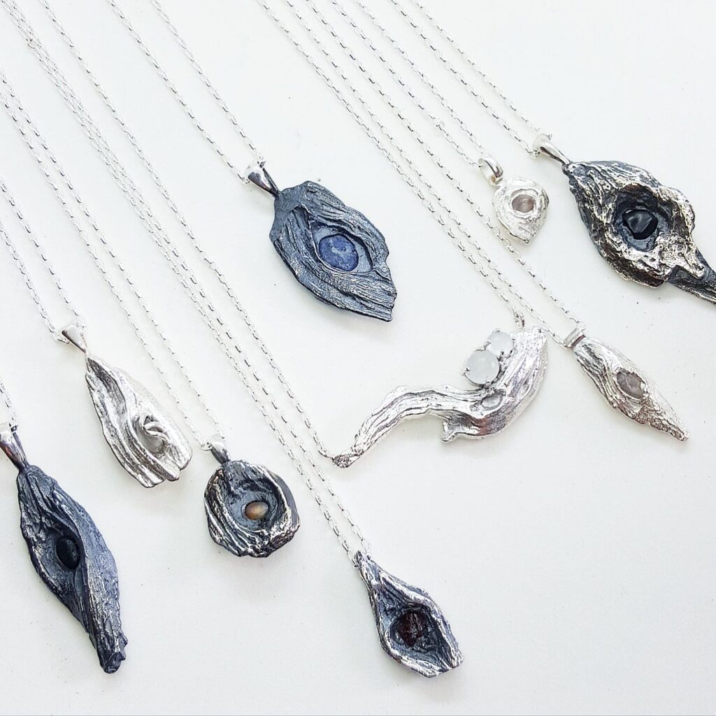 Kirra-lea Caynes is a Tasmanian-based metal artist and trade-qualified jeweller with over a decade of experience. Drawing inspiration from nature and found objects, she crafts unique jewellery, tableware, and sculptures using metals like copper, silver, gold, and platinum. Her innovative approach, particularly in sand casting and cast-in-place stone techniques, has earned her multiple accolades, including the 2019 JAA Jeweller of the Year award for her piece Plumage. Beyond creating, Kirra-lea shares her expertise through workshops across Australia, New Zealand, and England, teaching the ancient art of sand casting to both novices and fellow jewellers. Working from her home studio, she integrates elements like twigs, shells, and bones into her designs, reflecting the natural beauty of her surroundings.